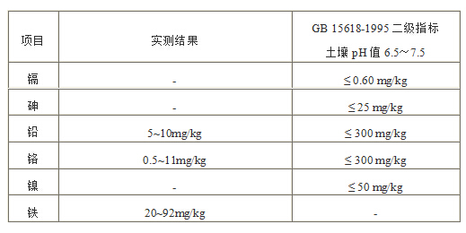 盡管國標GB 535—1995注明“硫酸銨作物農業用時可不檢驗鐵、砷、鉛、鉻等重金屬含量等指標”,但為慎重起見,在上述測試時對副產物硫銨進行重金屬含量檢測,實測值如下:
